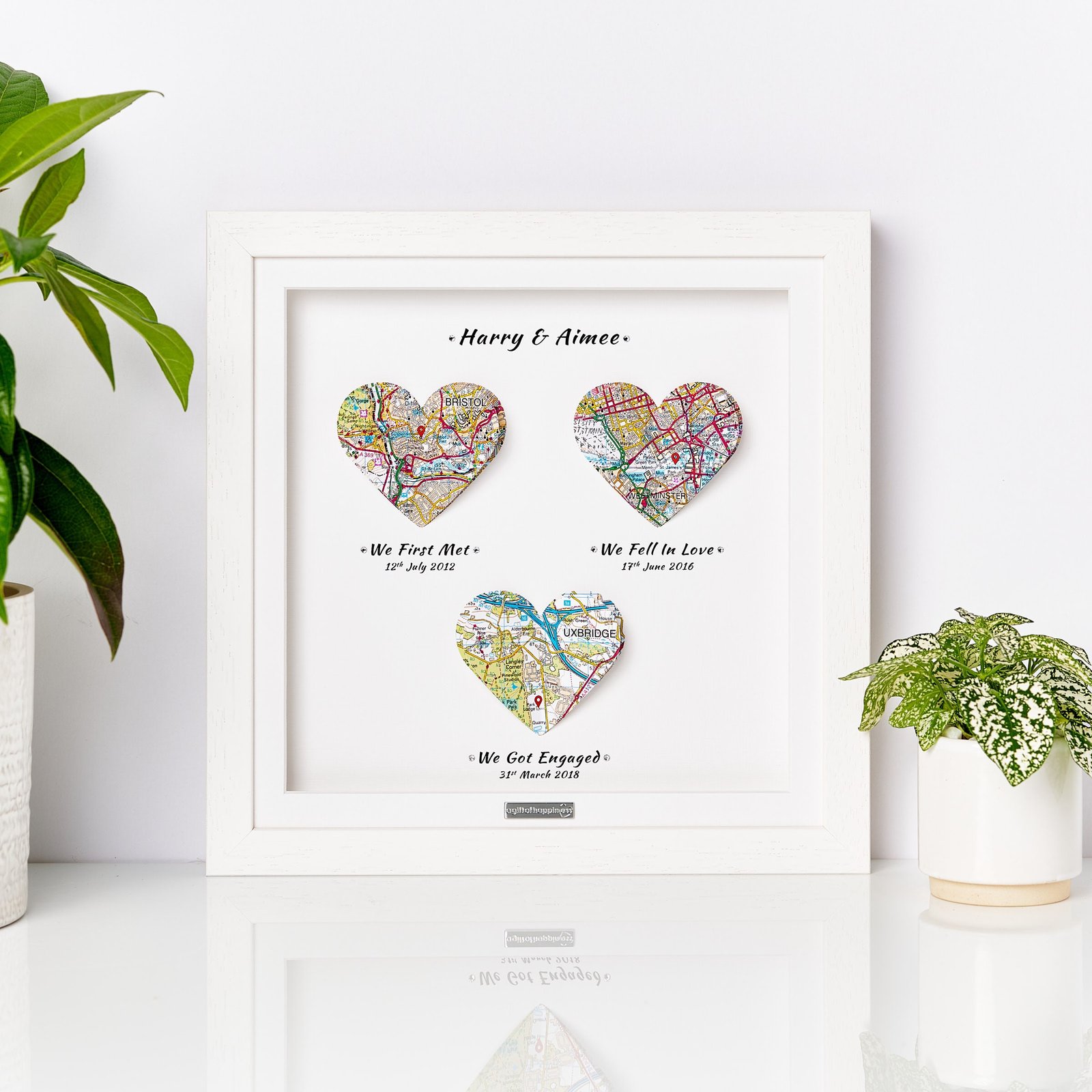 Our Heart Maps Anniversary Gift is a heartfelt and personalized way to commemorate the meaningful milestones of your relationship. Each heart-shaped map is custom-designed to showcase the exact locations of your first meet, first date, and first kiss, capturing the essence of your love story in a visually stunning and sentimental display. Whether you’re celebrating a milestone anniversary or simply want to show your partner how much their love means to you, this unique gift is a perfect way to cherish the moments that have brought you closer together.