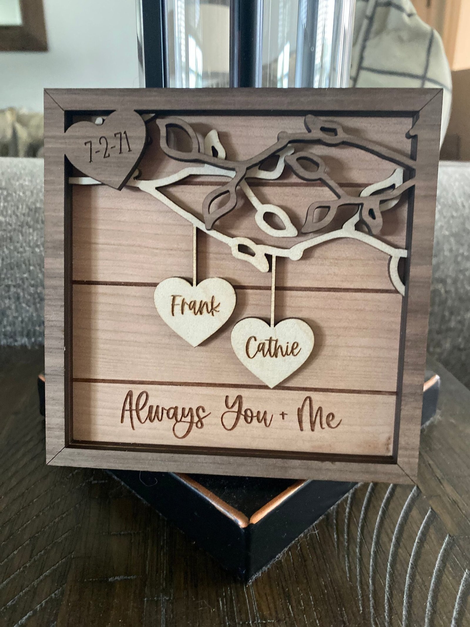 This wooden sign brings warmth, beauty, and personalization into any home, turning a simple wall or shelf into a space filled with love and meaning.