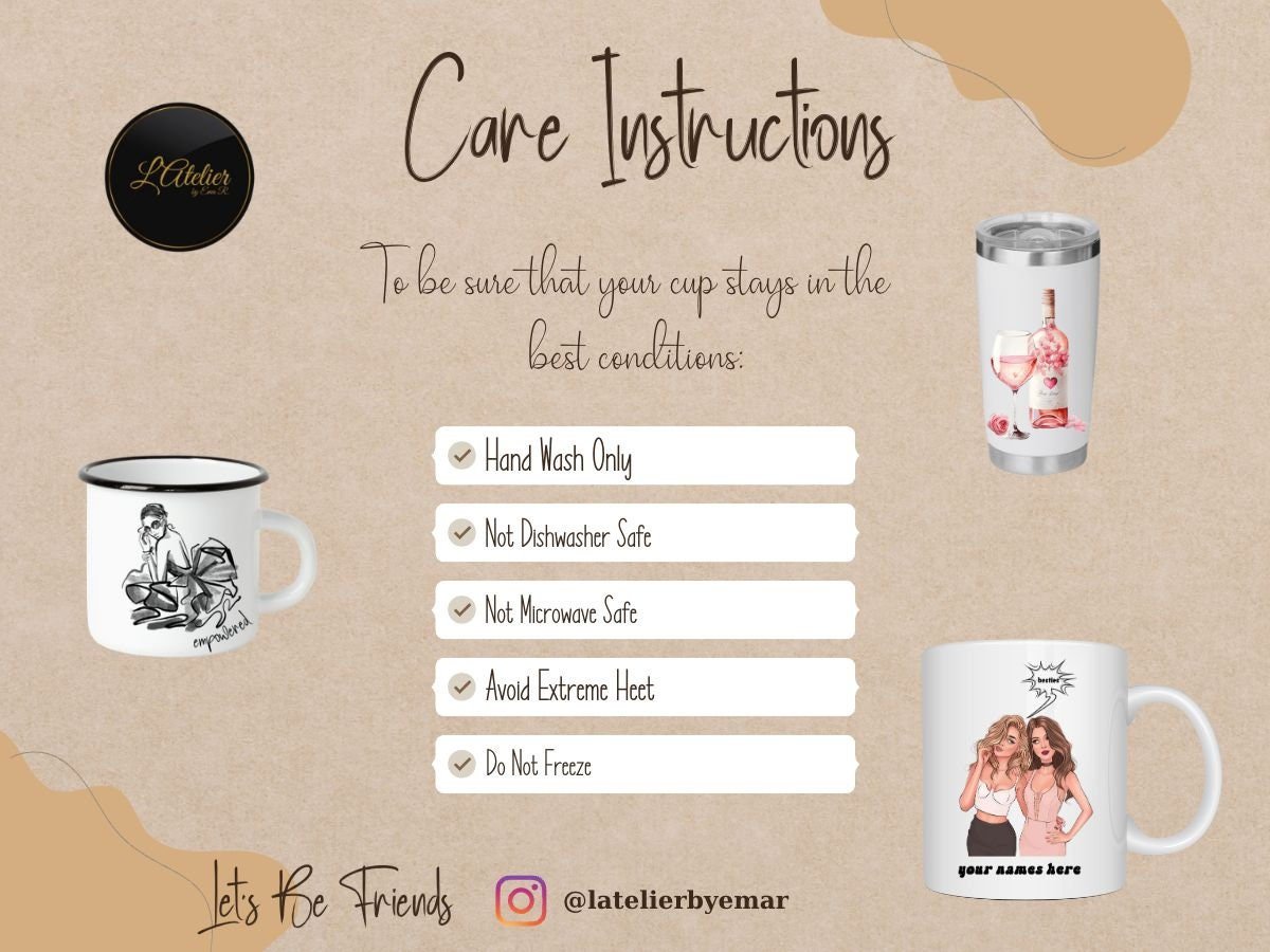 - Care Instructions: Ceramic – Dishwasher & Microwave Safe Tumbler – Hand Wash Recommended