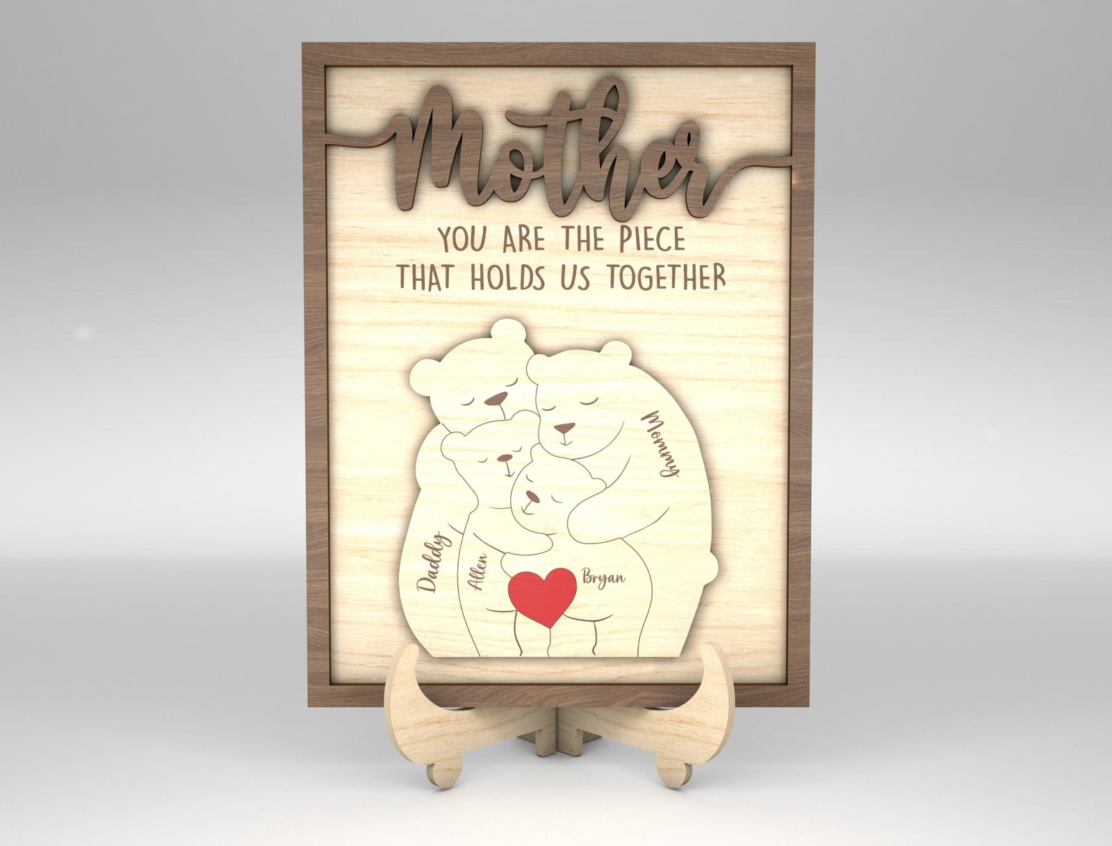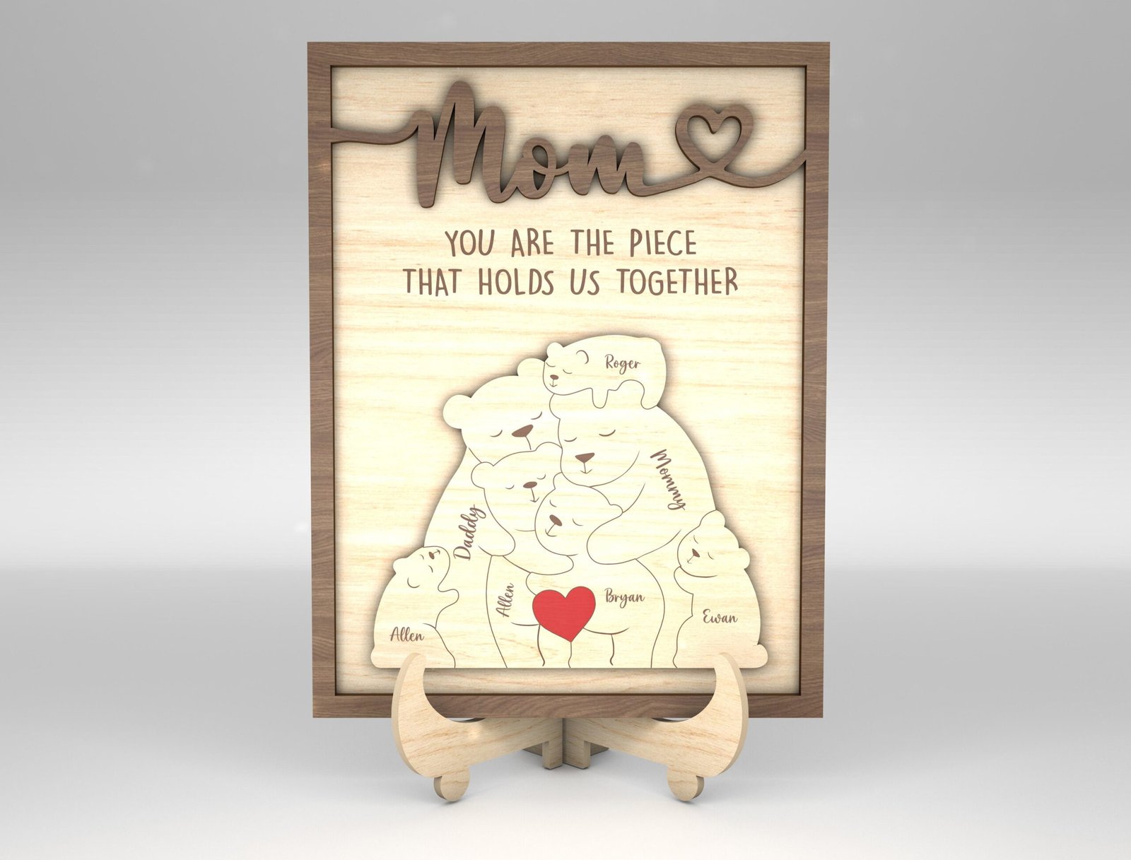 Capture the warmth of your family in a beautiful and customizable digital design with our Personalized Family Puzzle Sign SVG Bear. This downloadable SVG file is ideal for Cricut, Silhouette, and other cutting machines. Whether you’re creating a heartfelt gift, wall décor, or a keepsake sign, this puzzle-style bear layout lets you add individual names, making each piece of the bear represent a beloved family member. Perfect for Mother’s Day, Father’s Day, housewarming gifts, or just because—you’ll be turning pixels into precious memories in minutes.